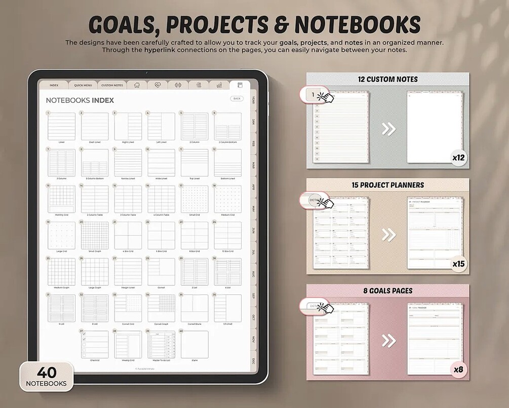 - 40 Digital Notebooks: Keep your notes and ideas neatly organized.